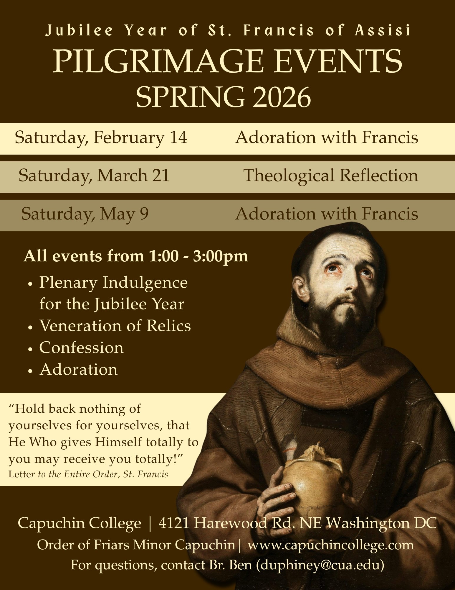 Every Saturday morning (8:30am) during the CUA Semester, join us to celebrate the Sacred Liturgy and enjoy specialty coffee and fresh pastries, all made by the friars here!
